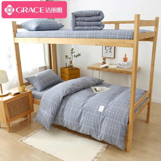 首页 > 装具 > 床褥单 > 洁丽雅 全棉三件套100%纯棉套件床单款色织水洗棉新疆棉学生宿舍单人床被套150*200cm格纹蓝0.9/1.2米床 (SKU:yzwhyp931703