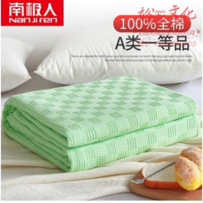 南极人全棉A类纱布 夏季薄款空调毯 午休毯子 绿色-100%新疆棉毛巾被 100cmx150cm【铺盖二用】 982200037(SKU:yzwhyp931713