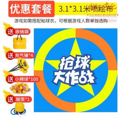 抢球大作战大赛游戏布团建团队游戏拓展活动道具趣味运动会 成人3*3米喷绘布 充气锤*4 棉球*100 (SKU:yzwhyp931720