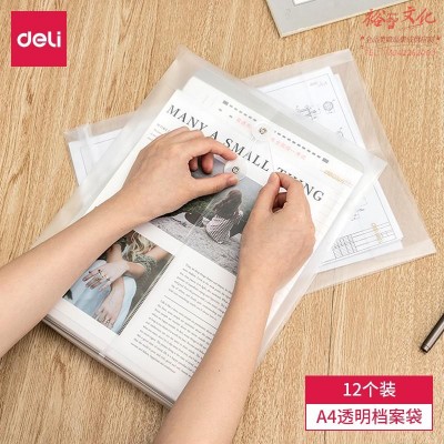 得力(deli)12个装A4透明磨砂文件袋防水档案袋 3cm背宽资料袋 5511A(SKU:yzwhyp931749
