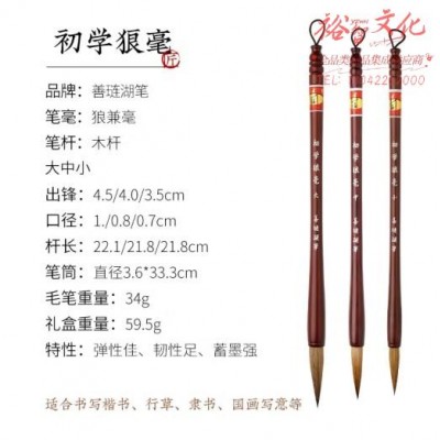 善琏湖笔 狼毫毛笔套装 书法国画毛笔礼盒文房四宝初学者学生儿童成人楷书行书书法练习 初学狼毫三支装 (SKU:yzwhyp931753