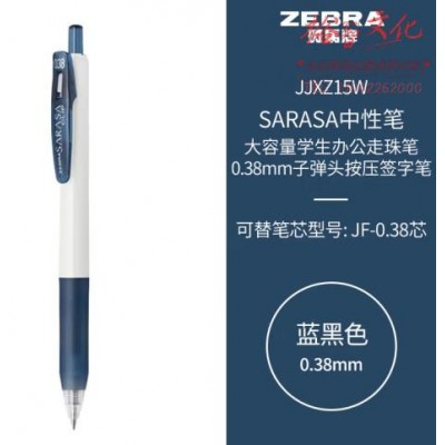 斑马牌(ZEBRA)中性笔 0.38mm子弹头按压签字笔 大容量学生办公走珠笔 JJXZ15W 蓝黑色 (SKU:yzwhyp931761