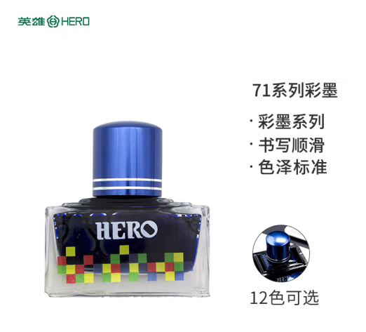 英雄(HERO)钢笔/签字笔钢笔墨水 非碳素染料型彩色墨水系列 7102彩墨蓝黑色 (SKU:yzwhyp931767