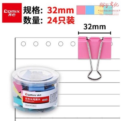 齐心(Comix)24只32mm彩色金属长尾夹中号EB404(SKU:yzwhyp931843