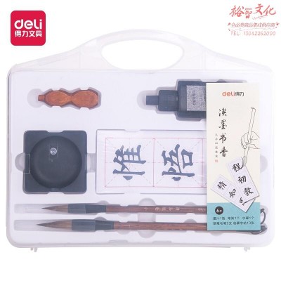 得力(deli)文房四宝书法套装 字帖学生成人(毛笔/墨水/墨碟/葫芦型笔搁/字帖) 练字帖毛笔 初学入门款74290(SKU:yzwhyp931867