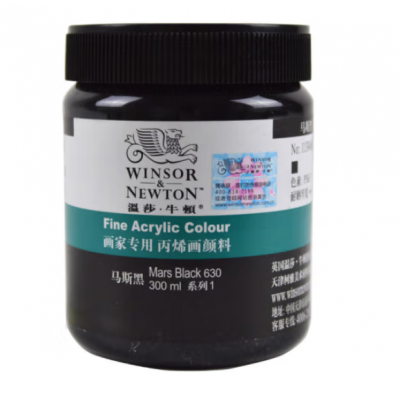 温莎牛顿 300ml画家专用丙烯颜料墙绘颜料 手绘DIY防水不易掉色 马斯黑