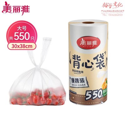 美丽雅(Maryya)一次性保鲜袋食品级家用厨房冰箱冷冻背心式550只大号38*30cm冷藏分装袋加厚点断式超市连卷袋 (SKU:yzwhyp931914