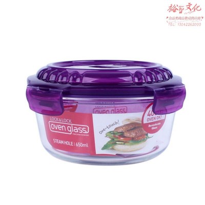 乐扣乐扣 呼吸透气耐热玻璃保鲜盒 微波炉专用加热饭盒 密封便当盒餐盒泡面碗带盖 收纳盒圆形 650ml LLG831VOL(SKU:yzwhyp931937