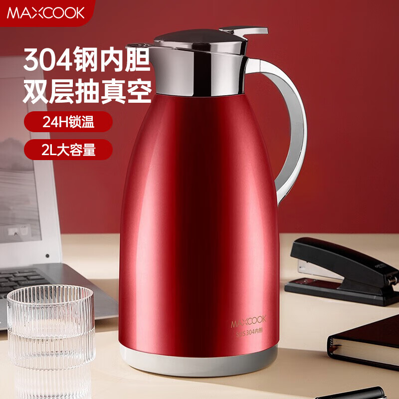 美厨(maxcook)保温壶 304不锈钢真空热水壶保温瓶暖壶开 2.0L红色MCB394 (SKU:yzwhyp931976