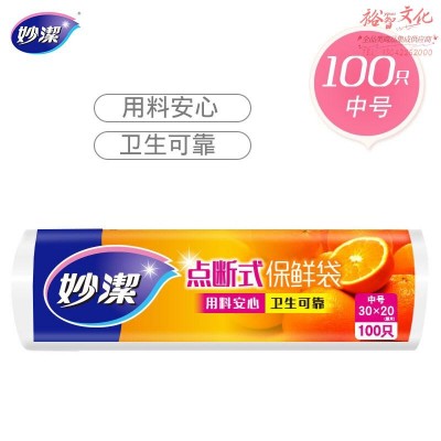 妙洁(MIAOJIE) C型点断式PE一次性加厚保鲜袋 中号100只 MBRMC100 (SKU:yzwhyp931978