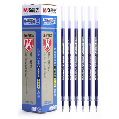 晨光中性笔芯agr640c3学生考试用0.5黑色全针管考试专用替芯碳素黑油墨水笔水性笔芯红色蓝色批发 蓝色 20支/盒