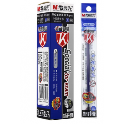 晨光文具学生用中性笔芯MG-6150水笔签字笔通用替芯0.5mm全针管考试用黑红蓝色笔芯办公书写笔芯 蓝色 20支/盒装