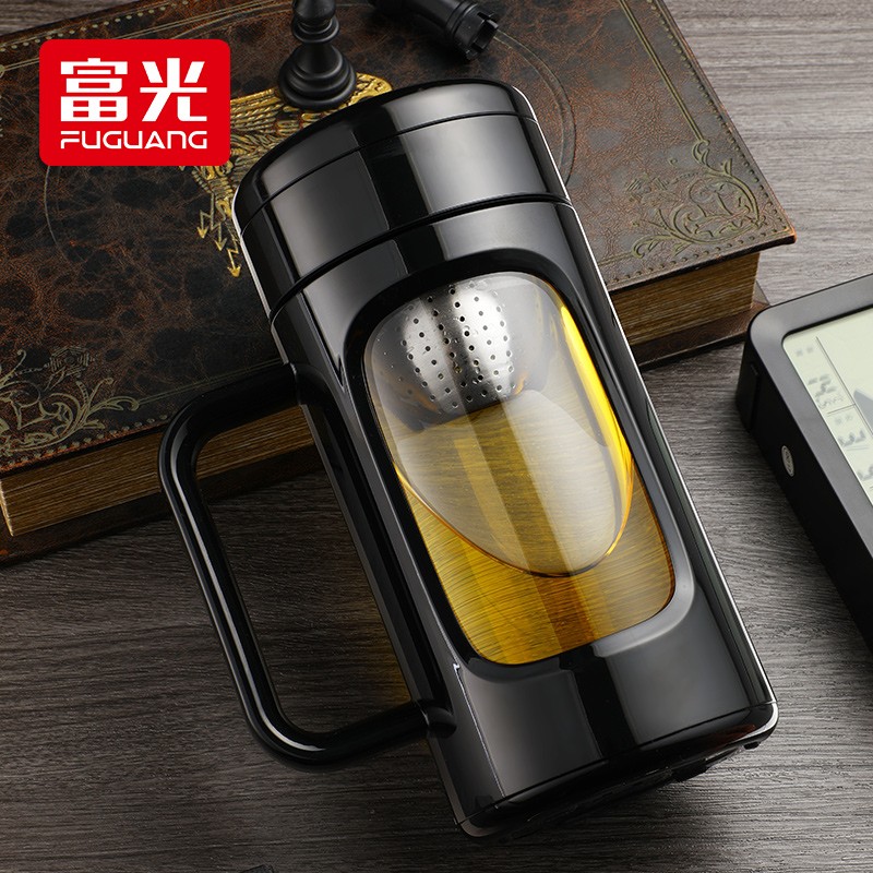 富光 格韵系列玻璃杯700ml 双层塑玻杯大容量牛饮者水杯带把 茶水分离泡茶杯子带茶隔 WFS1032-700 (SKU:yzwhyp932151