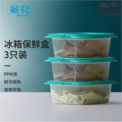 茶花 收纳盒冰箱保鲜盒厨房用品冷冻盒储物盒子便当盒460ml 蓝色3支装 000002(SKU:yzwhyp932168