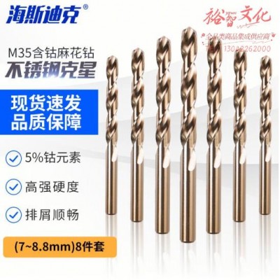 海斯迪克 HKsq-248 麻花钻全磨制高速钢麻花钻直柄含钴麻花钻金属打孔钻头 (7~8.8mm)8件套(SKU:yzwhyp932207