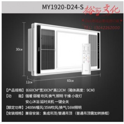 首页 > 电气设备 > 取暖器 > 美的 Midea 集成吊顶多功能风暖浴霸浴室灯 LED灯照 照明换气吹风取暖数显 超薄机身 遥控款MY1920-D24-S(SKU:yzwhyp932239