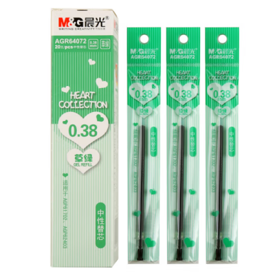晨光彩色中性笔芯0.38mm全针管替芯水笔笔芯混合装彩色替芯学生 草绿色 20支装