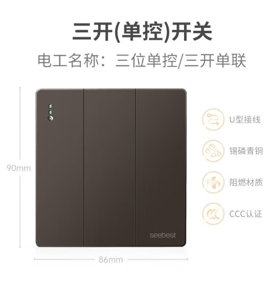 视贝(SEEBEST)三开单控 开关面板86型家用暗装墙壁开关空调插时尚质感 (SKU:yzwhyp932296