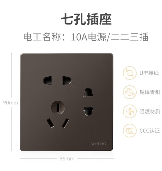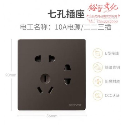 视贝(SEEBEST)七孔插座 开关面板86型家用暗装墙壁开关空调插时尚质感 (SKU:yzwhyp932297
