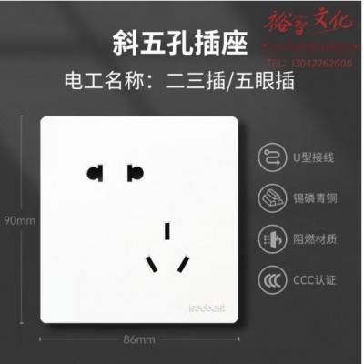视贝(SEEBEST)斜五孔插座 开关面板电源白色86型全屏大板智美系列 (SKU:yzwhyp932298