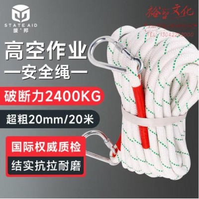 首页 > 建筑建材 > 高空安防用品 > 援邦 20mm高空作业绳20米带双钩 防坠落户外安装空调工地施工作业安全绳 (SKU:yzwhyp932311