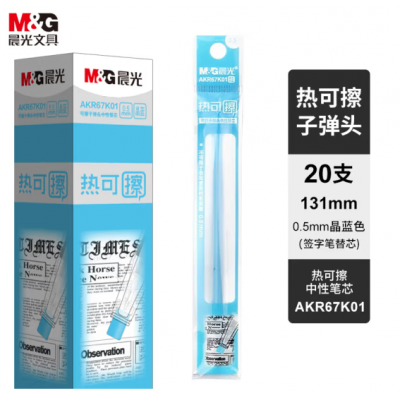 首页 > 办公用品 > 文具 > 晨光(M&G)文具晶蓝色0.5mm热可擦中性笔芯 子弹头签字笔替芯 水笔芯 20支装