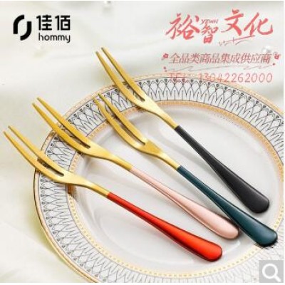 佳佰 彩色烤漆水果叉不锈钢甜品叉子彩色4支装 JB-0500SKU:yzwhyp932436