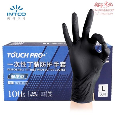 英科 一次性手套加厚黑色丁腈食品加工劳保防护手套 L大码SKU:yzwhyp932687