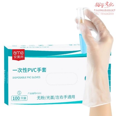 安美尚 A5101一次性手套PVC透明检查防疫加厚耐磨食品餐饮实验室工作防护手套 L码 100只/盒SKU:yzwhyp932721