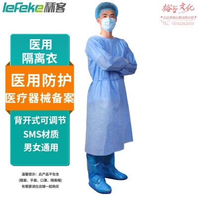 秝客一次性防护隔离服 反穿式背开式 隔离衣 蓝色透气工作服 防尘服 男女均码 SMS材质SKU:yzwhyp932830