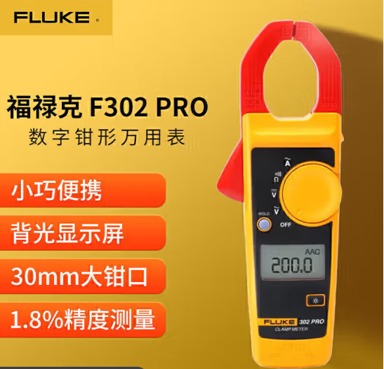 福禄克(FLUKE)F302PRO 交流数字钳形表 电流表 钳形万用表多用表 400A (SKU:yzwhyp932973