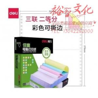 首页 > 纸及纸质品 > 纸及纸板(不包含复印纸) > 得力 deli 佳宣 J241-3电脑打印纸(1/2CS彩色撕边)(盒)(SKU:yzwhyp933166