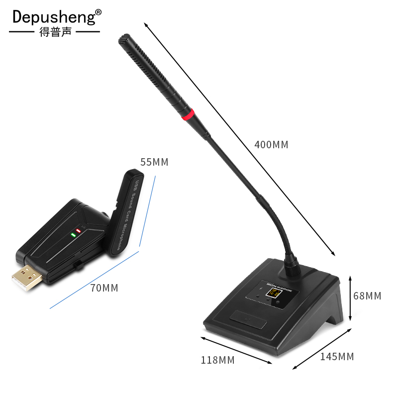 首页 > 信息化设备 > 耳机(耳麦) > 得普声 电脑录音麦克风笔记本无线会议话筒视频网课培训语音桌面一拖二鹅颈电容麦USB QU7 无线会议话筒【USB口 一拖二】 (SKU:yzwhyp933389