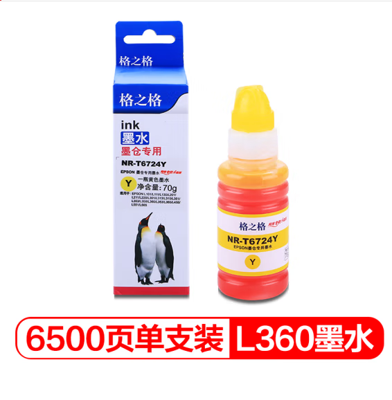 首页 > 办公用品 > 墨水盒 > 格之格 NR-T6724Y 黄色墨水 适用爱普生L310 L360 L1300 L313 L301 L365 L101 L111 L201 L211墨仓式打印机 (SKU:yzwhyp933402