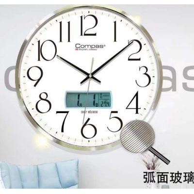 康巴丝(COMPAS)石英表 挂钟表 直径36cm 镀银 弧面玻璃(带日历) 3240-1