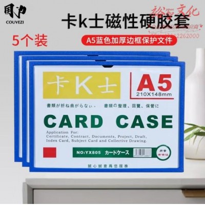 国为(COUVEZI) 卡k士磁性硬胶套PVC卡片袋文件保护卡套 带磁力贴框展示牌标识牌 A5蓝色5个(带磁贴) (SKU:yzwhyp933783