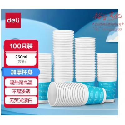 得力(deli)250ml(9盎司)加厚一次性杯子 水杯/纸杯 100只装 办公用品 蓝色9561 (SKU:yzwhyp933885