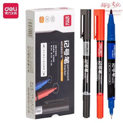 得力(deli) 小双头多用记号笔签字笔 勾线笔会议笔马克笔 12支/盒 混色 6823(SKU:yzwhyp933917