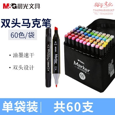 晨光(MG)文具60色双头性速干马克笔 袋装油性学生款水彩笔 纤维笔头宽头约7mm 绘画手绘涂鸦APMV1415(SKU:yzwhyp933944