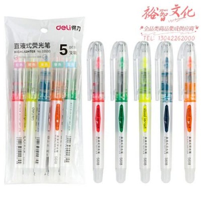 得力(deli)5色直液荧光笔套装重点标记笔手帐可用水性记号笔 33530(SKU:yzwhyp934010