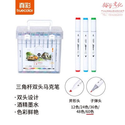 真彩 60色马克笔双头油性马克笔套装学生手绘漫画设计三角杆提手桶装/MK3199-60(SKU:yzwhyp934027