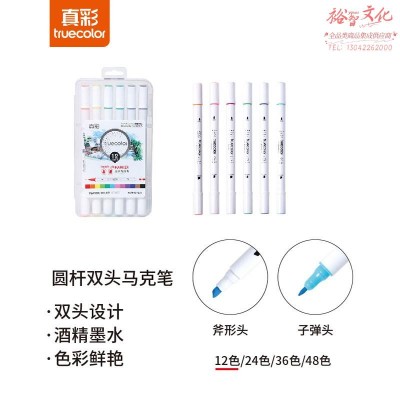 真彩 12色马克笔双头圆杆油性马克笔套装学生手绘漫画设计盒装/MK3166-12(SKU:yzwhyp934045