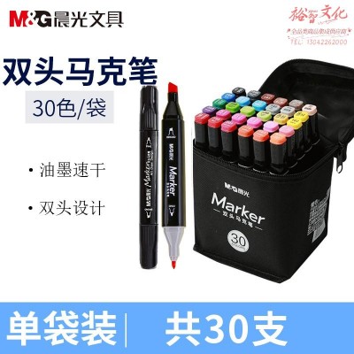 晨光(MG)文具30色双头性速干马克笔 袋装油性学生款水彩笔 纤维笔头宽头约7mm 绘画手绘涂鸦APMV1413(SKU:yzwhyp934061