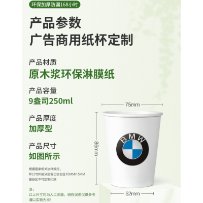 定做一次性纸杯子 9盎司250ml毫升 1000只装