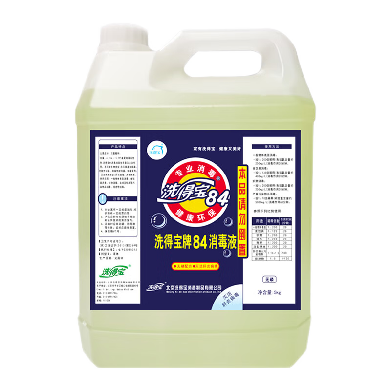 洗得宝 84消毒液 漂白水 除菌水 杀菌消毒水 84消毒大包装5kg/桶(SKU:yzwhyp934277
