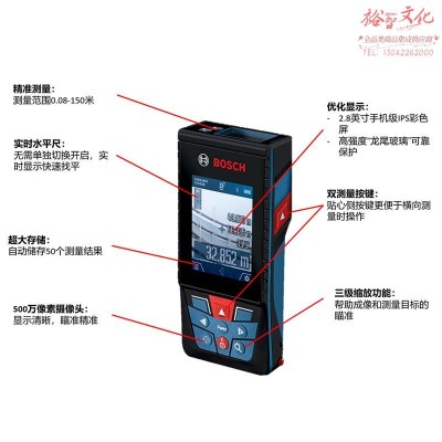 博世 红外线测距仪高精度电子尺激光尺家用量房仪 GLM150C 150米数码变焦智能蓝牙户外测距仪SKU:yzwhyp934392