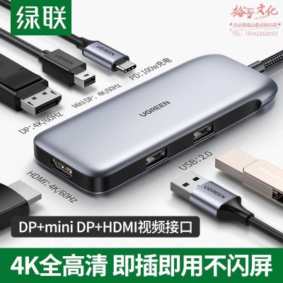 首页 > 信息化设备 > 数据线 > 绿联Type-C扩展坞USB-C转HDMI/DP/MiniDP转换器4K60Hz高清投屏拓展坞适用苹果华为 HUB分线器六合一 80865 (SKU:yzwhyp934522