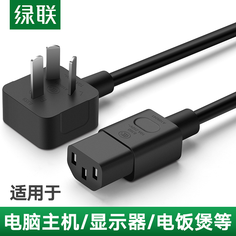 绿联 电源线 主机电源线 国标三孔品字尾通用 电饭煲台式机箱显示器电源连接线适配器插头1.5米 30565 (SKU:yzwhyp934546