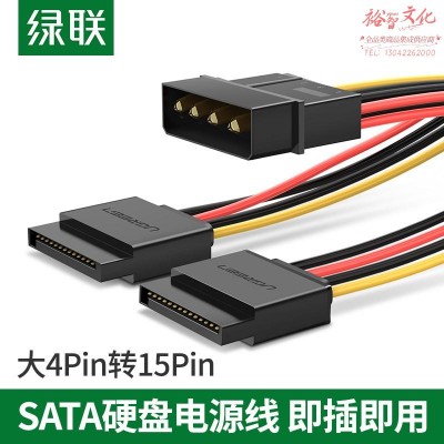 绿联(UGREEN)50398 sata电源线 台式主机机箱 连接固态机械硬盘 大4pin转15pin一分二转接头转换线 (SKU:yzwhyp934662