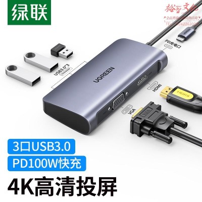 首页 > 信息化设备 > 数据线 > 绿联 UGREEN 50319 通用扩展坞 Type-C转HDMI/VGA转换器 USB-C转接头 分线器 六合一 (SKU:yzwhyp934668
